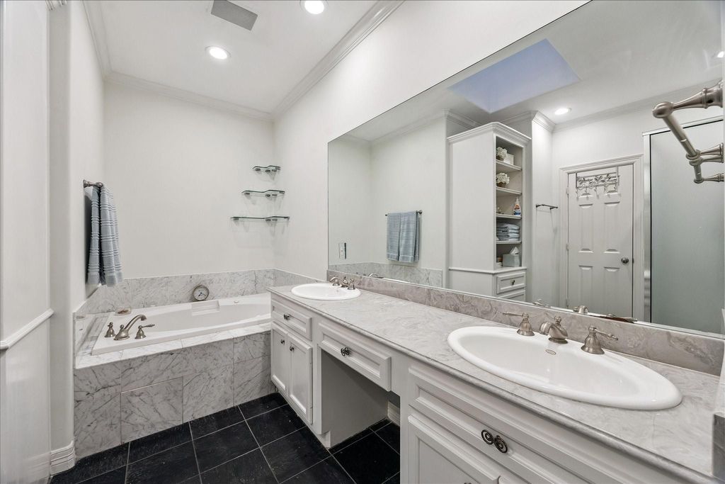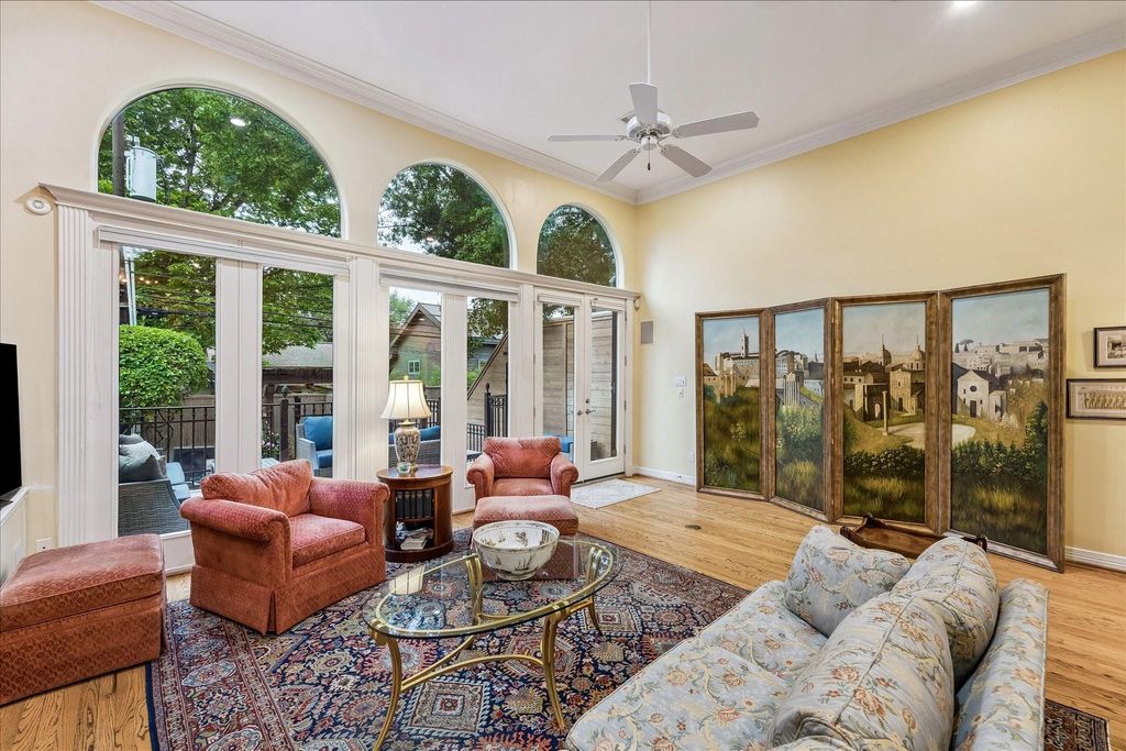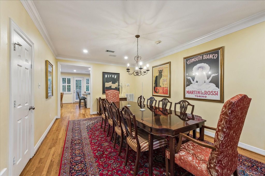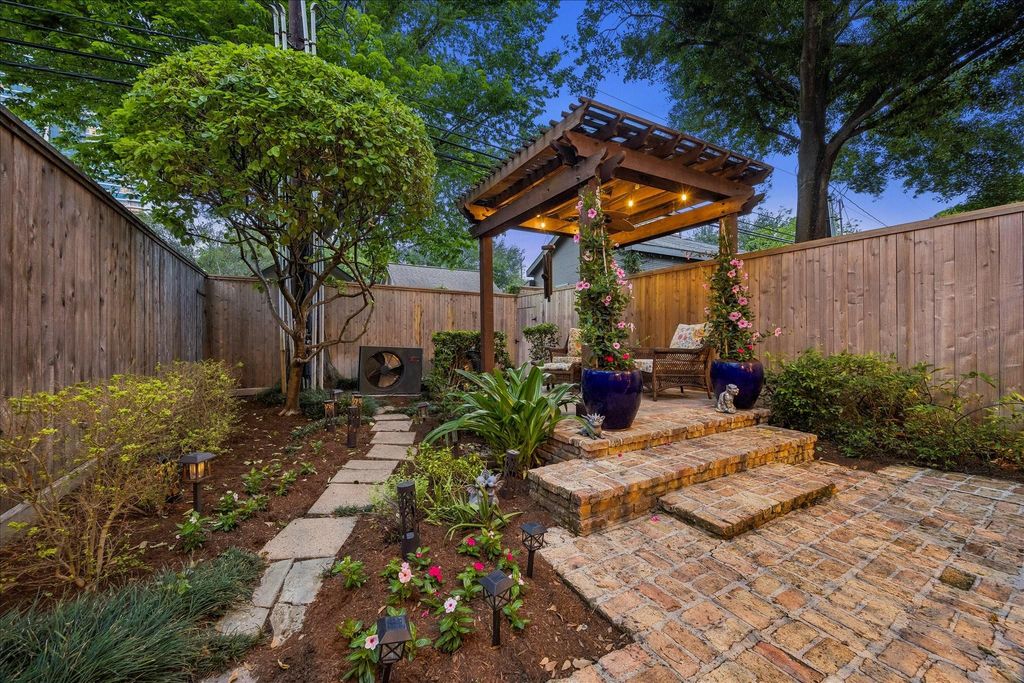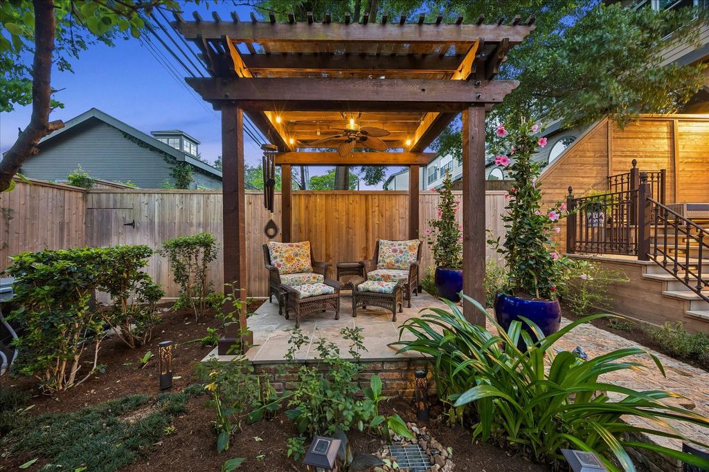 Discover this Upper Kirby jewel! An impressive living area boasts a fireplace flanked by classic built-ins with soaring ceilings allowing for floor-to-ceiling windows that showcase the outdoors & bathe the home in natural light. Outdoor living is a dream with two entertaining areas: a generous deck with illuminated steps leading to an attractive patterned brick patio with a pergola. An elegant dining room overlooks the living area & outdoors. The sunny kitchen features an island, gas cooktop, large pantry, & breakfast area with a quaint balcony. All bedrooms are conveniently located on the third floor with elevator capability. The primary suite offers a vaulted ceiling and cheerful bath with dual vanities, tub, shower, & water closet, plus an amazingly equipped closet. Secondary bedrooms have walk-in closets as well. Bonus spaces include a first-floor office or den & unbelievable, easily accessible under-home storage. Moments from Kuhl-Linscomb, Whole Foods, Armandos, and Carrabba's.