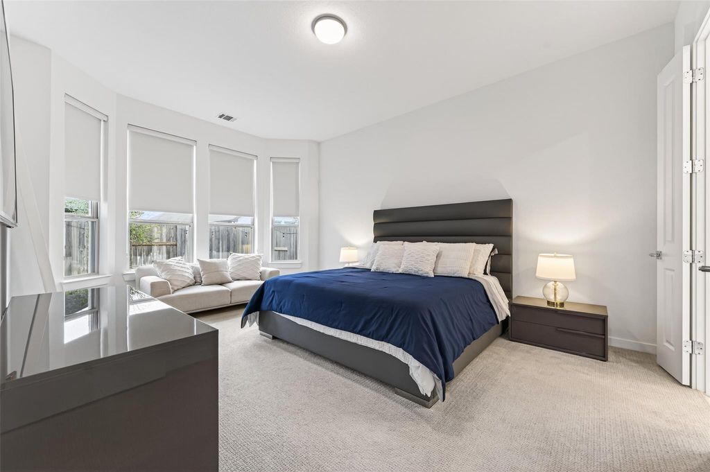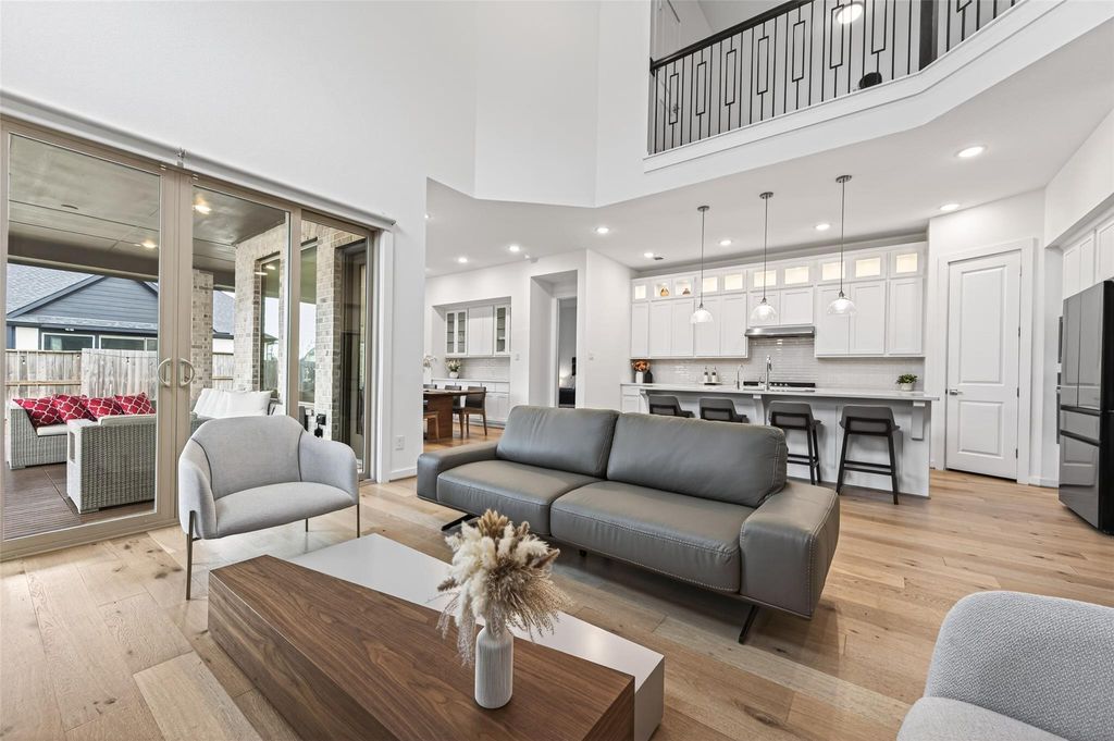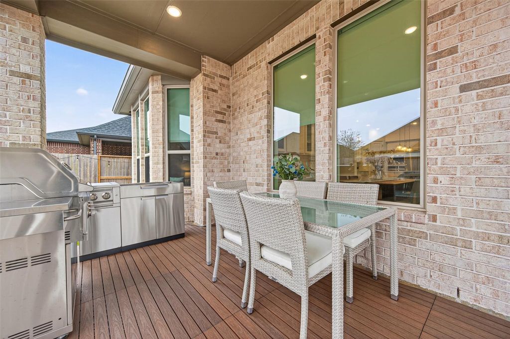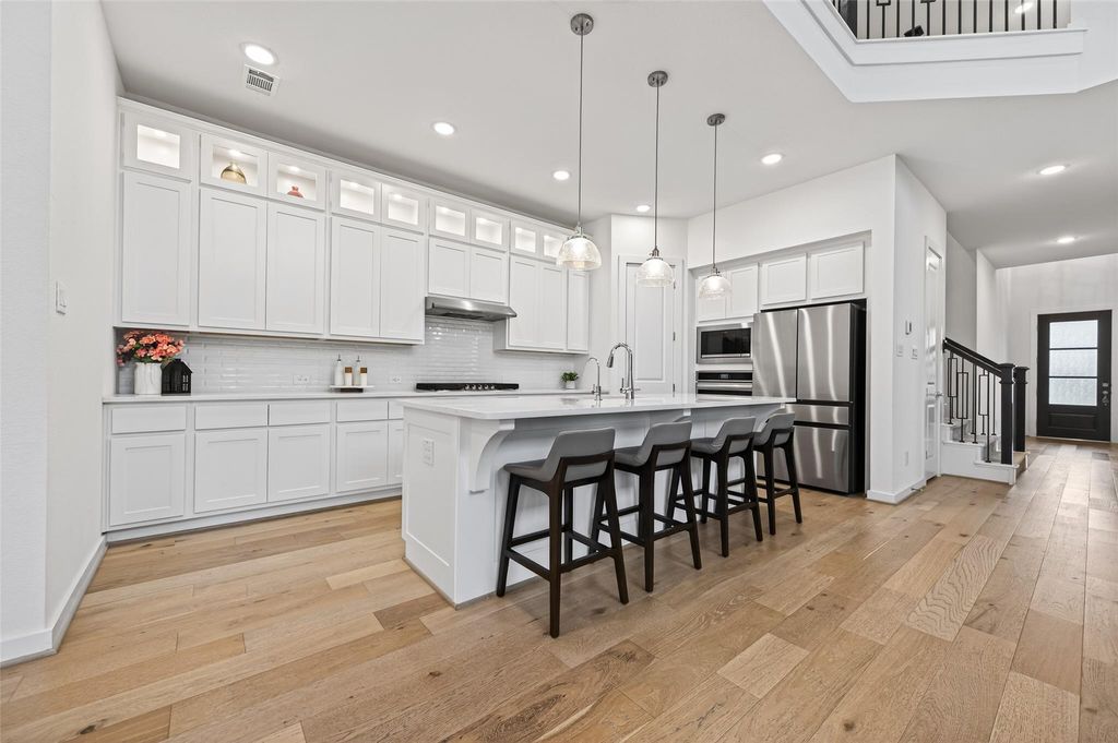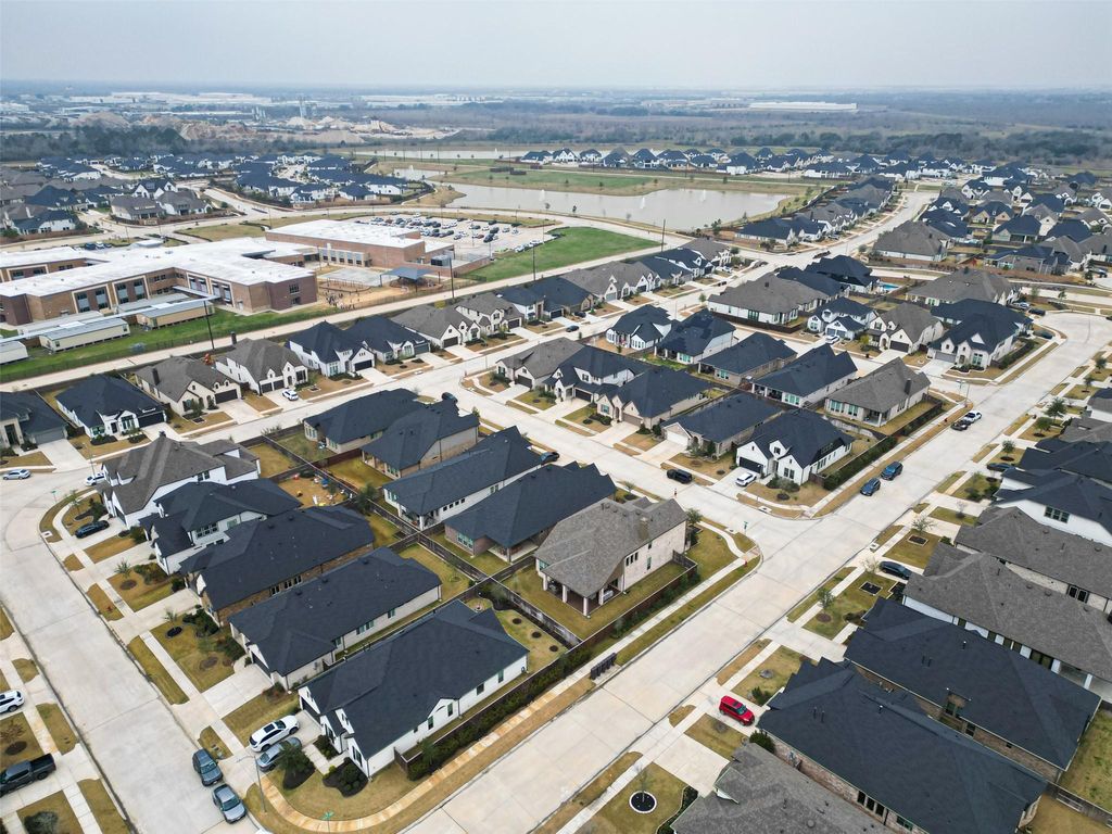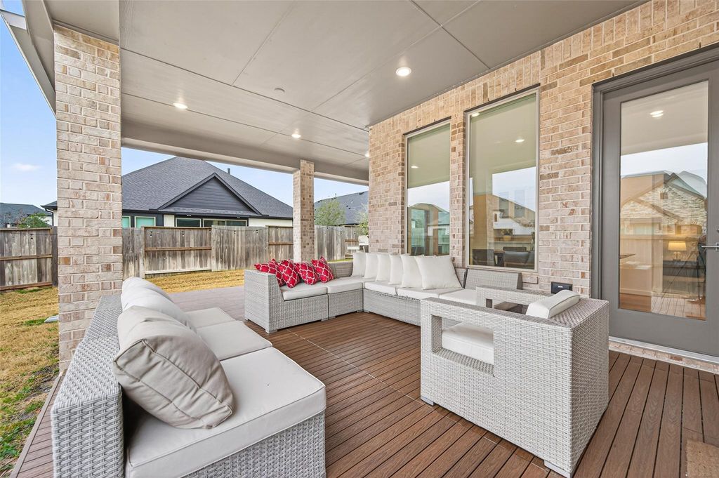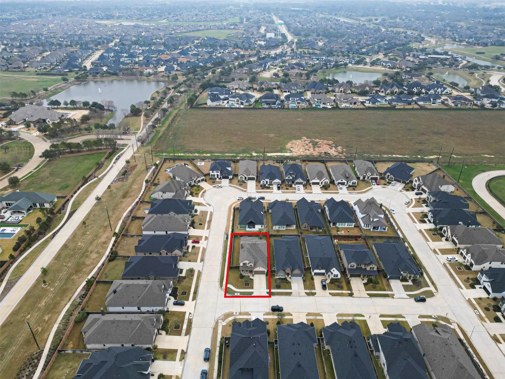 Located in Cane Island & within walking distance to Robertson Elementary, this modern chic style home is loaded with upgrades and finishes throughout. This 4-bed, 3-bath home features a primary suite w/bay window & spa-like bath offering double sinks, a freestanding soaking tub, & oversized walk-in shower. A private study w/French doors, game room, media room, & 2-car garage provide flexible living. Wood vinyl plank flooring runs through common areas & study, w/carpet in the primary bedroom & upstairs. The living room highlights a floor-to-ceiling wood accent fireplace with wood-burning or gas option. The kitchen shines with a large island, quartz countertops, lighted glass cabinets, Frigidaire stainless appliances with 5-burner gas cooktop, & upgraded chrome hardware. Double sliding doors open to a wraparound Ultrashield deck with two grills included. Full sprinklers with French drains, full brick exterior, covered porch, water softener, & large laundry complete this exceptional home.