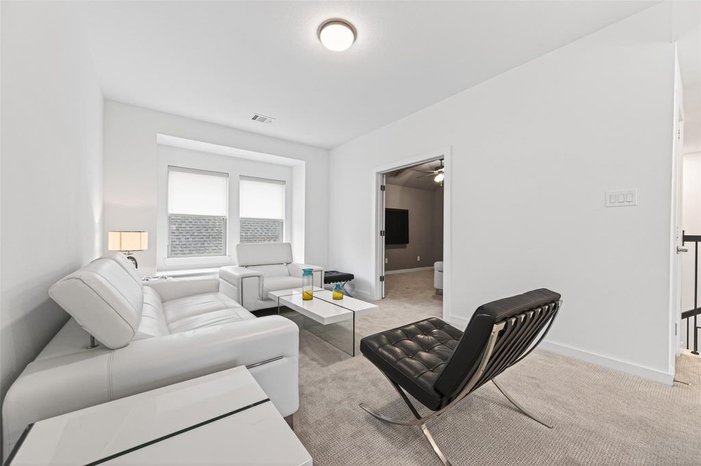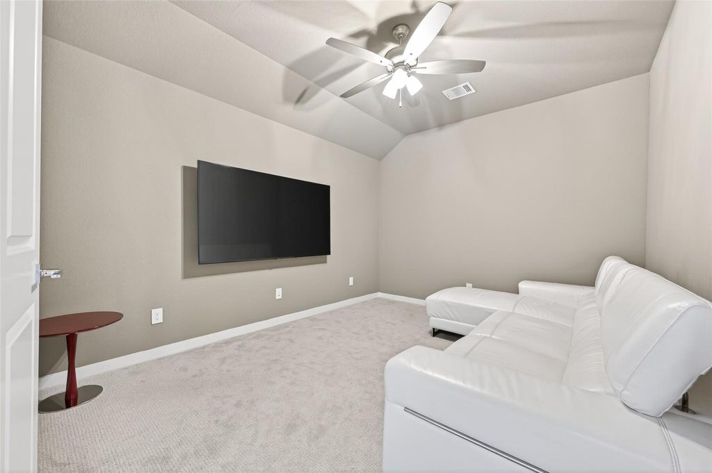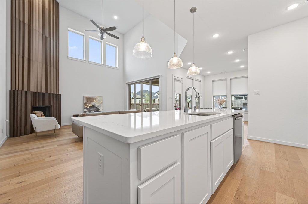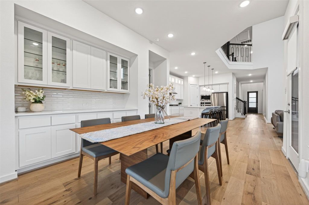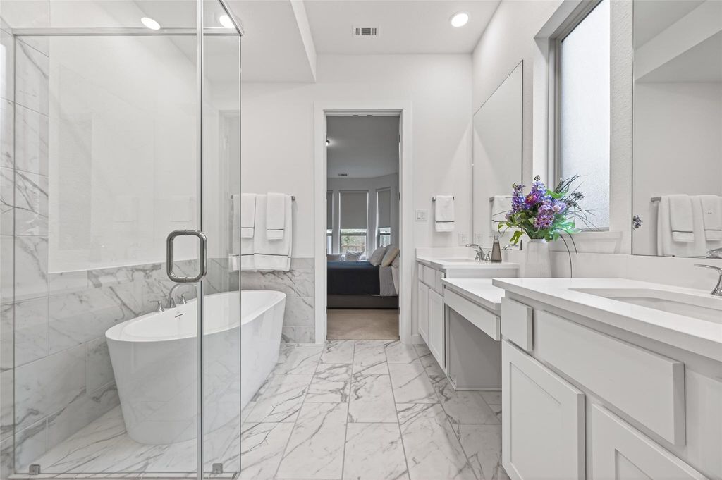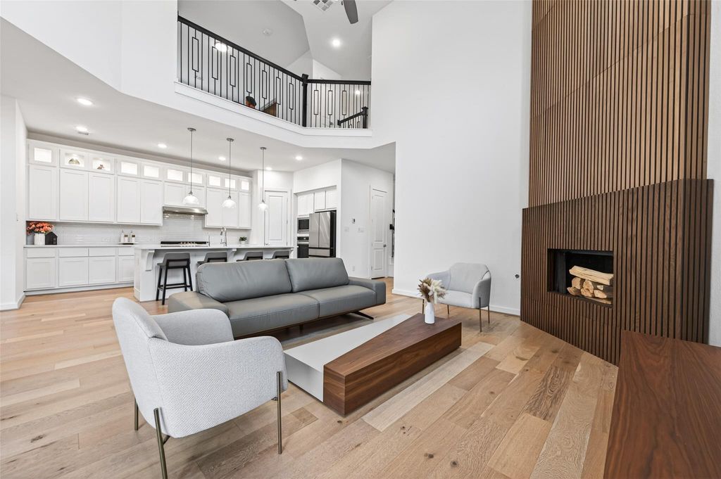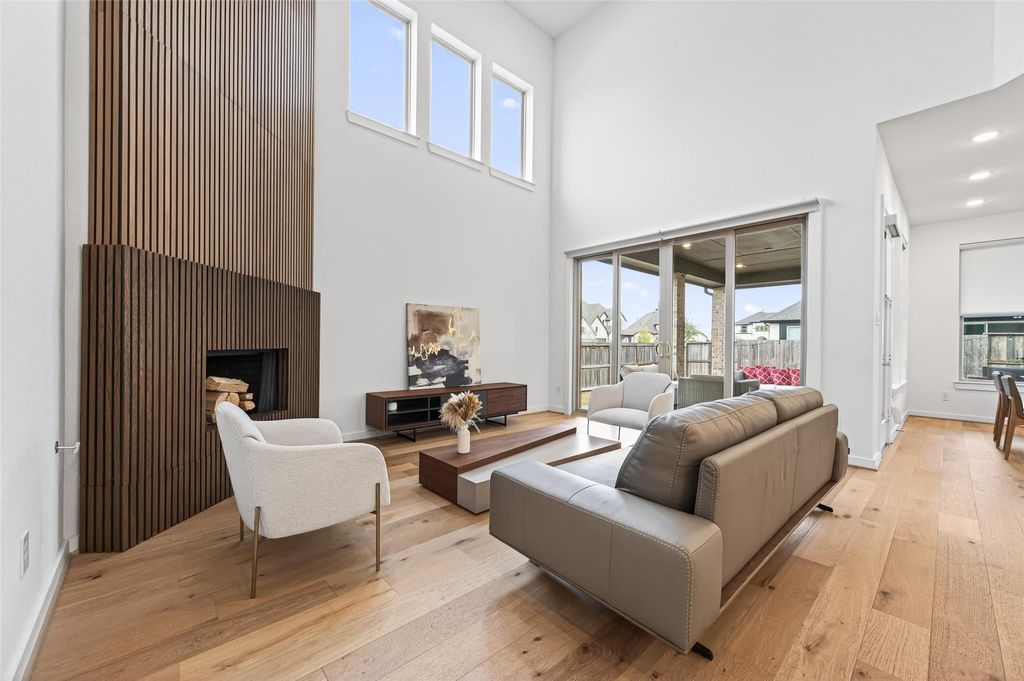 Located in Cane Island & within walking distance to Robertson Elementary, this modern chic style home is loaded with upgrades and finishes throughout. This 4-bed, 3-bath home features a primary suite w/bay window & spa-like bath offering double sinks, a freestanding soaking tub, & oversized walk-in shower. A private study w/French doors, game room, media room, & 2-car garage provide flexible living. Wood vinyl plank flooring runs through common areas & study, w/carpet in the primary bedroom & upstairs. The living room highlights a floor-to-ceiling wood accent fireplace with wood-burning or gas option. The kitchen shines with a large island, quartz countertops, lighted glass cabinets, Frigidaire stainless appliances with 5-burner gas cooktop, & upgraded chrome hardware. Double sliding doors open to a wraparound Ultrashield deck with two grills included. Full sprinklers with French drains, full brick exterior, covered porch, water softener, & large laundry complete this exceptional home.