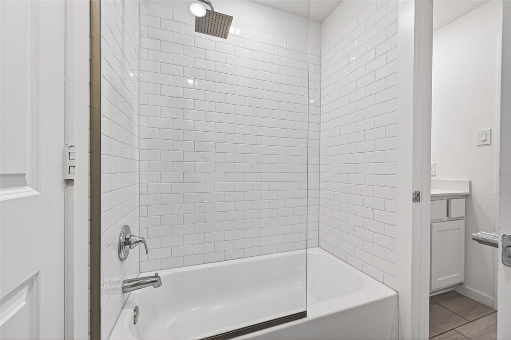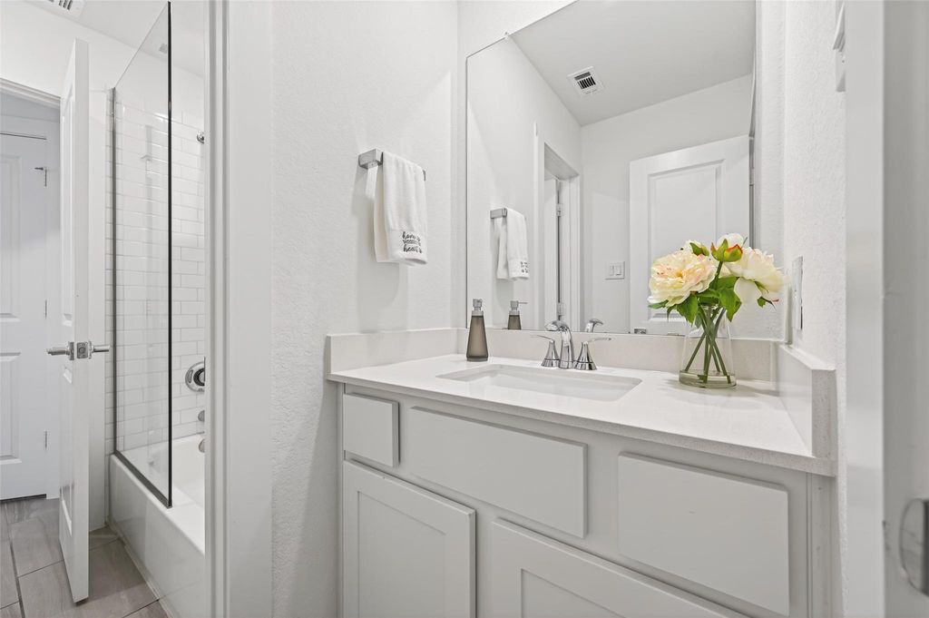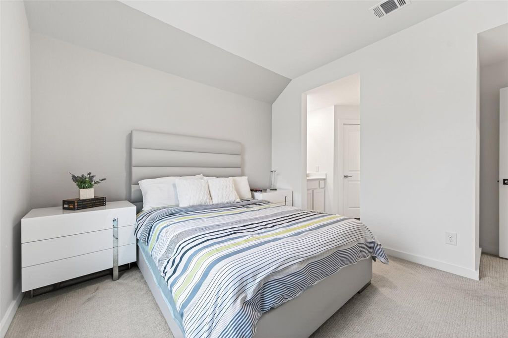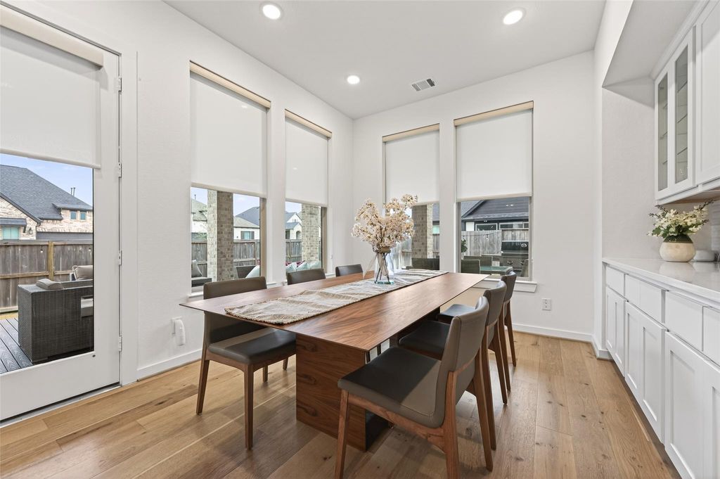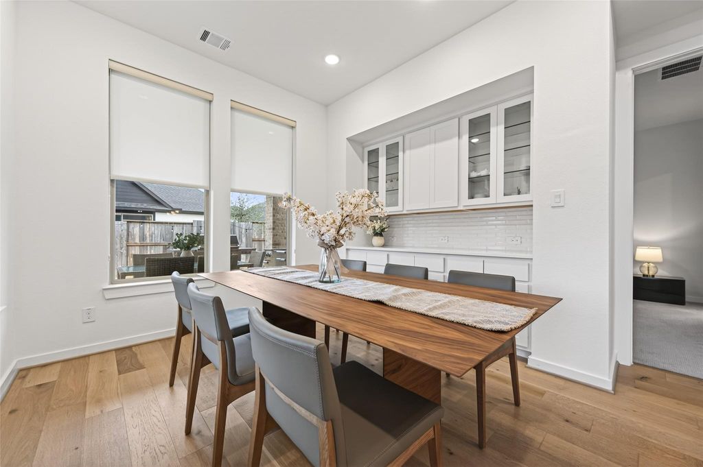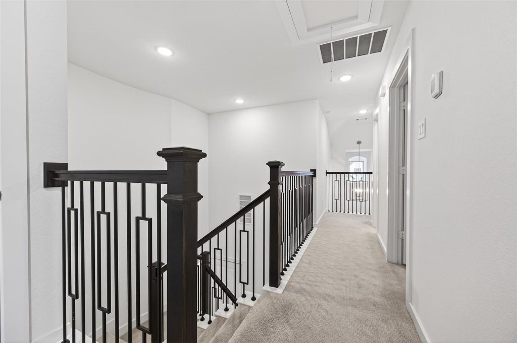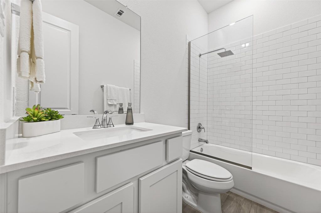 Located in Cane Island & within walking distance to Robertson Elementary, this modern chic style home is loaded with upgrades and finishes throughout. This 4-bed, 3-bath home features a primary suite w/bay window & spa-like bath offering double sinks, a freestanding soaking tub, & oversized walk-in shower. A private study w/French doors, game room, media room, & 2-car garage provide flexible living. Wood vinyl plank flooring runs through common areas & study, w/carpet in the primary bedroom & upstairs. The living room highlights a floor-to-ceiling wood accent fireplace with wood-burning or gas option. The kitchen shines with a large island, quartz countertops, lighted glass cabinets, Frigidaire stainless appliances with 5-burner gas cooktop, & upgraded chrome hardware. Double sliding doors open to a wraparound Ultrashield deck with two grills included. Full sprinklers with French drains, full brick exterior, covered porch, water softener, & large laundry complete this exceptional home.