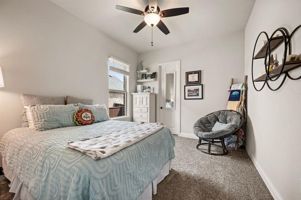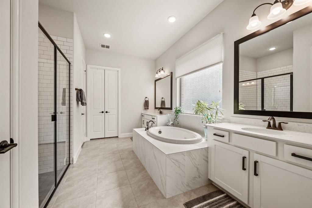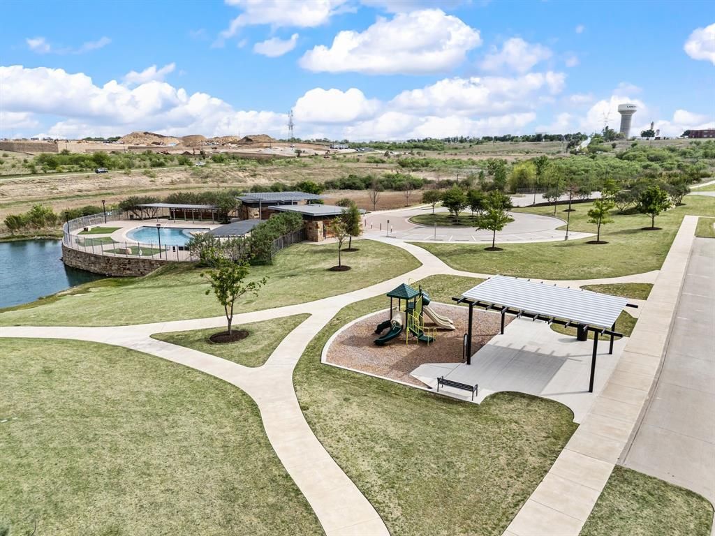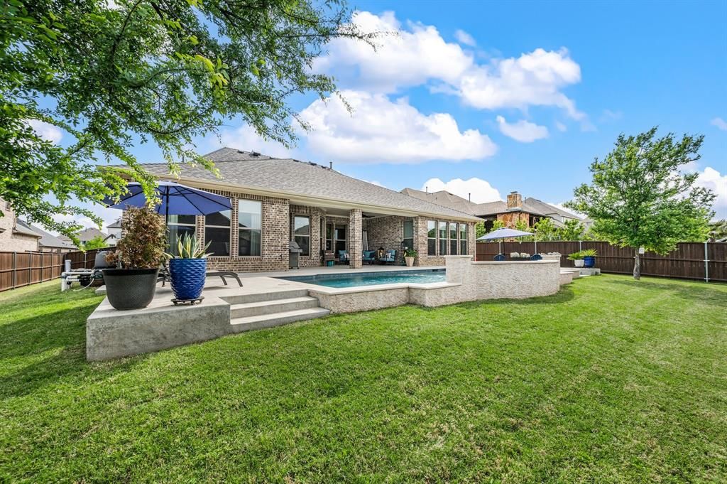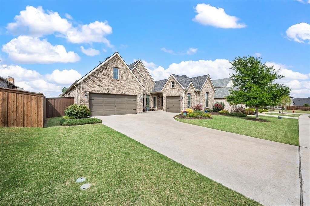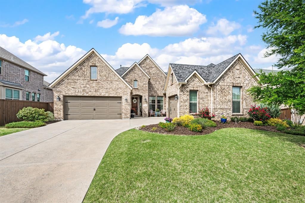 This exceptional all-brick, single-story residence is seated on a manicured interior lot. The open floor plan features fresh neutral paint & luxury vinyl tile flooring throughout the main living areas. Windows are fitted with professionally crafted shades that offer privacy at night & unobstructed views during the day. The kitchen is equipped with granite countertops, 42 inch white cabinetry, a 5-burner gas cooktop, double stainless steel ovens, & a stylish subway tile backsplash. A combination island-breakfast bar with undermount sink & pendant lighting provides additional prep & dining space. Additionally the home has both a breakfast nook & formal dining room. The main living area is filled with natural light & includes a gas log fireplace with a cedar mantle & surround sound. An oversized 2nd living area offers ample space for movie & game nights. The primary suite is privately situated & features an en-suite bath with separate quartz vanities, a soaking tub, a tiled walk-in shower, & spacious walk-in closet. Three more bedrooms provide space for family & guests including an in-law suite with private bath, walk-in shower, separate entry, & a breezeway to the single-bay garage. A dedicated home office further enhances this functional floor plan. The backyard features a large covered patio with surround sound, a natural gas line for grills, a grassy, treed area for play & a newly built chlorine pool with Travertine decking, a tanning ledge, & waterfall features. Energy-efficient upgrades include added insulation, a tankless water heater & solar powered roof vents. The home also features a water softener, 3-year-old roof & gutters, 3-car split-bay garage, an automated sprinkler system, & in-house tubing for safer pest control. HOA fees includes front yard maintenance & fertilization, plus full use of the community pool, walking trails, & playground. Located in Northwest ISD, this development enjoys convenient access to highways, shopping, dining & entertainment.