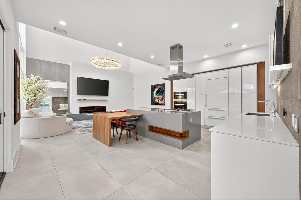 This modern architectural masterpiece blends European sophistication with cutting-edge design. Soaring ceilings, floor-to-ceiling windows, and gallery-like white walls flood the home with light. The open-concept kitchen features custom European cabinetry, Miele and Liebherr appliances, a walk-in pantry, and a striking quartz island with breakfast bar. An elevator connects all levels. Upstairs, a spacious game room and two secondary bedrooms each offer en-suite baths and custom closets. The third-floor primary retreat feels like a private spa with two closets, a soaking tub, rain shower, heated towel rack, and its own lounge and balcony. Outside, enjoy an entertainer's yard with a full outdoor kitchen and hot tub. Designer lighting, glass railings, and a whole-house generator complete this unique home, steps from Avondale Historic District, Max's Wine Dive, Cuchara, and more - make it your home today!