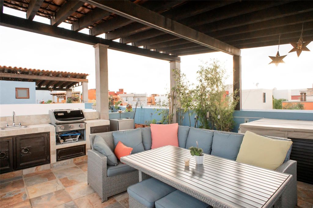 "¢ Three Terraces: Ideal for entertaining or relaxing, including a rooftop terrace with a hot tub and breathtaking panoramic views of San Miguel's iconic Parroquia.