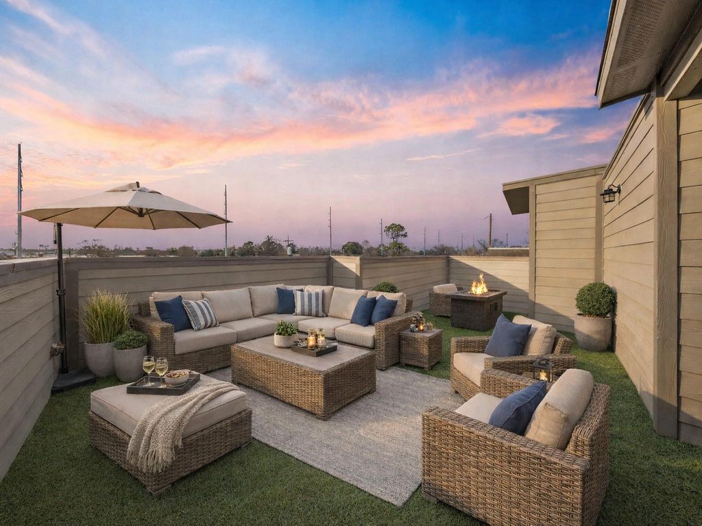 Now for sale, a rare opportunity ideal for an Airbnb or a spacious primary residence for a large family. This beautifully designed home features elegant marble flooring, custom cabinetry, and granite countertops. Two expansive living areas allow for ample entertainment, every detail is thoughtfully crafted. The private terrace includes a bathroom and overlooks the city, offering stunning views. The layout includes two primary suites and walk-in closets in every bedroom, offering comfort and flexibility.Prime location just 15 minutes from Downtown and the Medical Center, and 10 minutes from the University of Houston. Washer, dryer, and refrigerator are included, making this home truly move-in ready.